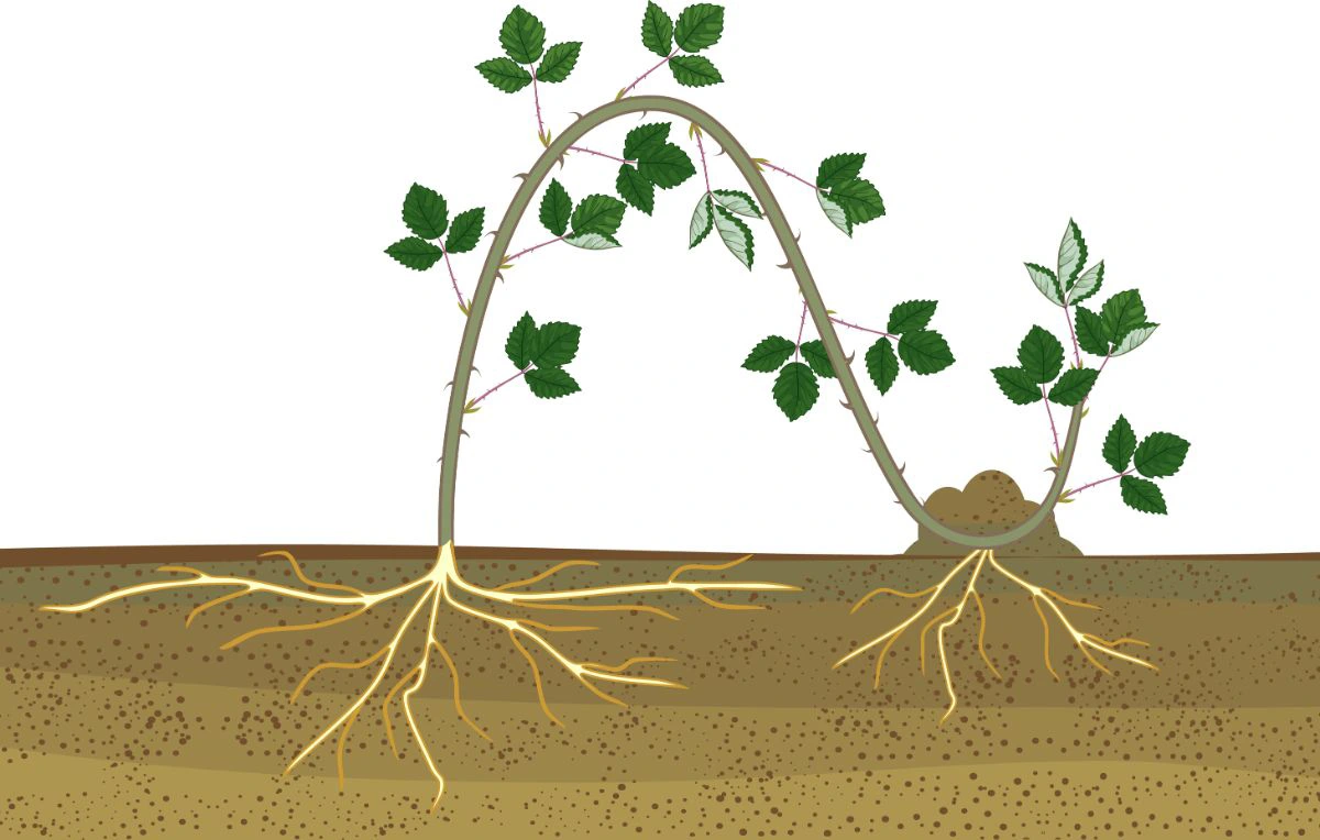 - Bend a low branch to touch the soil, removing leaves from the contact area.