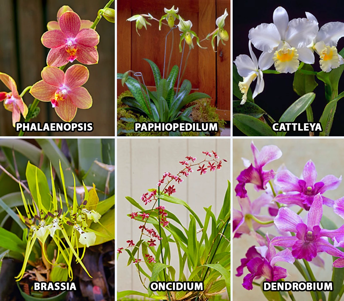 - Oncidium: Dancing-lady orchids, need good airflow and light.
